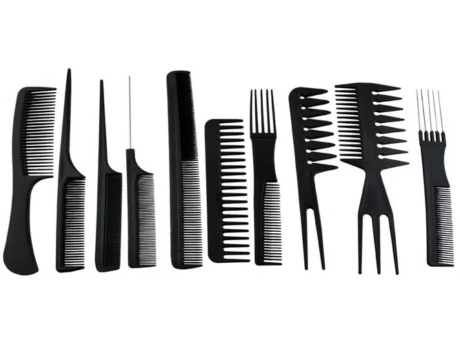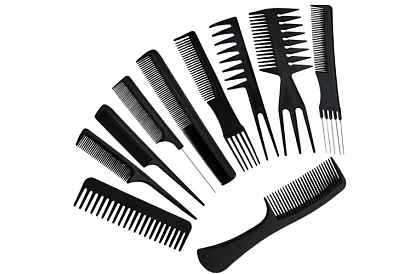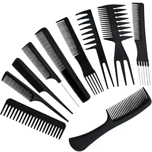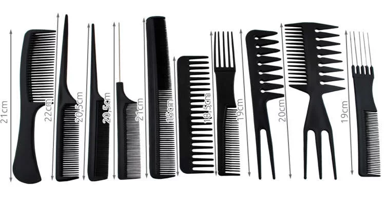 Setul practic de piepteni profesioniști este ideal atât pentru utilizarea în salonul de coafură, cât și pentru stylingul acasă. Diferitele tipuri și dimensiuni ale pieptenilor permit adaptarea ușoară a instrumentului la coafura specifică. Pieptenii sunt blânzi cu părul, rezistenți la căldură și facilitează perierea zilnică, precum și aranjarea mai complexă a părului.