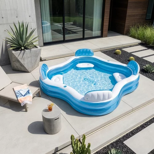 Răsfățați-vă cu o răcorire plăcută de vară chiar în grădină datorită piscinei gonflabile cu scaune integrate, care combină relaxarea și distracția pentru întreaga familie. Scaunele integrate cu spătar permit o odihnă confortabilă fără a necesita echipamente suplimentare, în timp ce volumul generos de apă oferă suficient spațiu pentru mai multe persoane. Instalare rapidă în câteva minute și materialul PVC rezistent garantează utilizare fără griji pe tot parcursul verii.