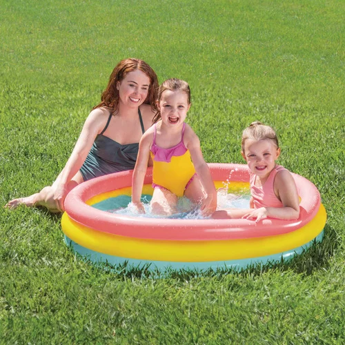 O piscină pentru copii cu fund moale gonflabil oferă confort și protecție pentru copiii mici în timpul jocului în apă în grădină, pe terasă sau pe balcon. Montare și depozitare ușoară asigură o pregătire rapidă pentru utilizare și liniște părinților, în timp ce pereții moi și fundul gonflabil protejează picioarele copilului și cresc confortul. Culorile curcubeului atrag copiii pentru un joc mai lung și distractiv.