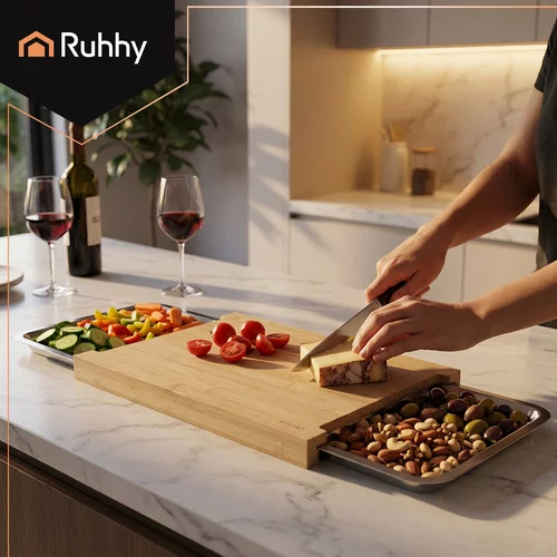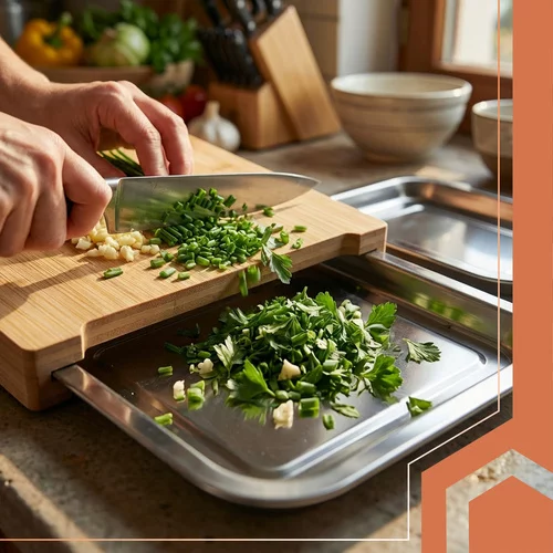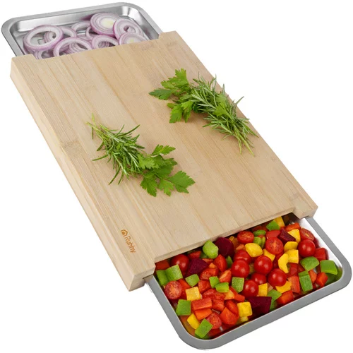 Placa facilitează tăierea, sortarea și transportul ingredientelor, datorită două recipiente retractabile se poate lucra mai repede și mai curat. Bambusul natural este rezistent, igienic și elegant, în timp ce recipiente din oțel permit stocarea confortabilă a alimentelor tăiate sau a resturilor. Ideal pentru gătit eficient acasă și în bucătării profesionale.