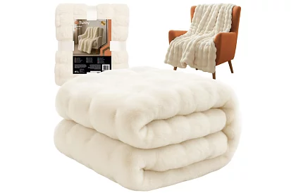 Îmbrățișare moale și căldură plăcută pentru momente de relaxare acasă sau la cabană. Suprafața catifelată cu efect de blană artificială, combinată cu catifeaua fină, oferă un confort perfect în timpul cititului, vizionării unui film sau relaxării. Nuanta elegantă de alb se integrează ușor în interiorul modern sau clasic și servește nu doar ca o pătură, ci și ca o cuvertură stilată.