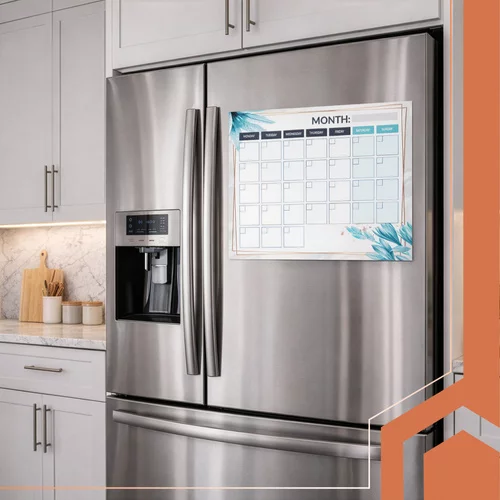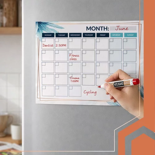 Planificarea clară a tuturor sarcinilor zilnice și a programului de familie este ușoară datorită planificatorului magnetic cu o suprafață ștearsă practică. Permite notarea rapidă a notițelor, listelor de cumpărături și termenelor importante fără haos inutil. Datorită amplasării pe frigider, este întotdeauna la vedere, ajutând astfel la îmbunătățirea organizării timpului și la reducerea stresului zilnic. Dispunerea flexibilă și suficient spațiu oferă control total asupra planificării.