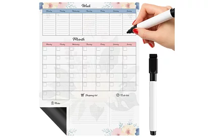 Planificatorul magnetic practic ajută la organizarea eficientă a sarcinilor zilnice, cumpărăturilor și evenimentelor importante într-un singur loc. Suprafața mare ștearsă permite scrierea și ștergerea ușoară a notițelor, secțiunile speciale pentru listele de cumpărături și sarcini asigură controlul total asupra programului zilnic. Organizatorul funcțional servește, de asemenea, ca accesoriu elegant pentru interior și un cadou minunat.