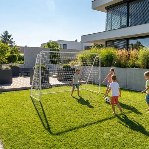 Oferiți copiilor și adulților bucuria fotbalului direct în grădină sau pe teren. Poarta de fotbal din metal oferă o construcție solidă, stabilitate și suficient spațiu pentru un joc realist și antrenamente de lovituri. Designul rezistent este potrivit pentru utilizarea regulată în aer liber și ajută la dezvoltarea mișcării, preciziei și spiritului de echipă.