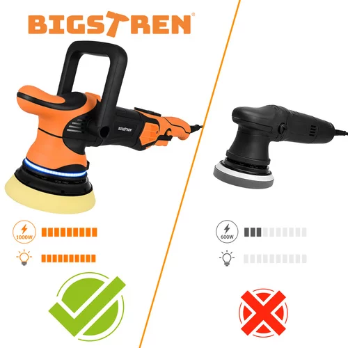 Oferiți vopselei mașinii dumneavoastră un aspect profesional cu polizor orbital Bigstren 1000 W, care este ideal pentru detailing, corectarea vopselei și lustruirea finală. Datorită sistemului de acțiune duală (Dual Action) și a cursei orbitale de 15 mm, elimină eficient zgârieturile fine, hologramele și oxidarea vopselei, minimizând riscul de supraîncălzire sau deteriorare a suprafeței. Potrivit pentru începători și utilizatori experimentați.