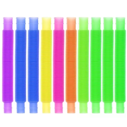Tuburi colorate și distractive, care combină stimularea senzorială cu dezvoltarea abilităților motorii și a creativității. Datorită diferitelor lungimi și culori, copiii și adulții pot crea forme proprii, pot învăța culorile și, în același timp, se pot bucura de relaxare și de reducerea stresului. Tuburile oferă un sunet scârțâitor atunci când sunt întinse, ceea ce sporește distracția interactivă și susține gândirea fizică.