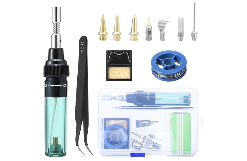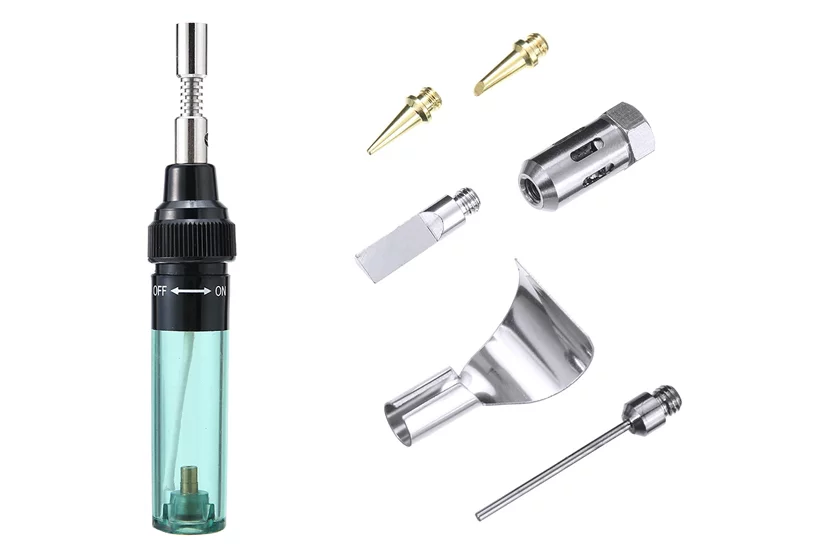 Aparat de lipit cu gaz, universal și la preț accesibil. Este potrivit pentru lipirea, modelarea și încălzirea materialelor, dar și pentru multe alte aplicații. Butanul (gazul pentru brichete) este folosit drept combustibil. Setul Pro Solder, cu accesorii profesionale, excelează prin faptul că este ușor de utilizat, fiind ideal pentru lucrările de precizie. Este în variantă practică portabilă, putând fi luat oriunde este nevoie.