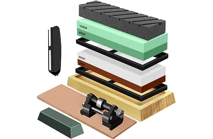 Precizie ascuțirea cuțitelor și uneltelor pentru fiecare gospodărie și atelier. Setul conține piatră de șlefuit de diferite granulații, benzi de lustruire și suport din bambus, care permit obținerea unei tăișuri netede și ascuțite pentru toate tipurile de lame. Potrivit pentru cuțite de bucătărie, cuțite de vânătoare, dălți sau topoare. Ghidaje stabile și pad-uri antiderapante asigură o ascuțire sigură și confortabilă.