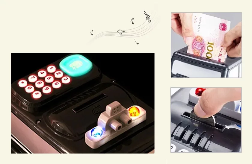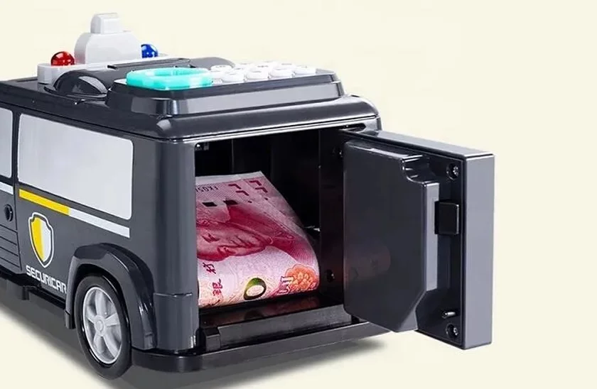 Banii din pușculiță sunt foarte bine protejați printr-un cod din patru cifre. Dacă introduceți parola corectă și o confirmați apăsând butonul „amprentă”, ușa din spate se va deschide automat. În cazul în care parola este incorectă, veți fi atenționați de un semnal sonor și luminos.