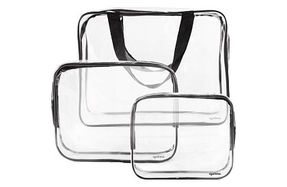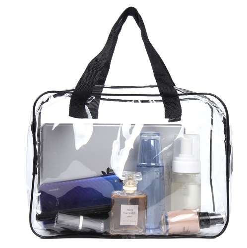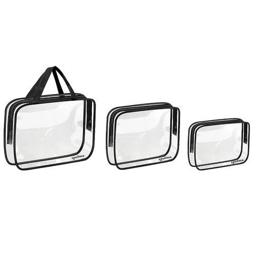 Set de trei pungi cosmetice transparente de dimensiuni diferite este ideal pentru organizarea produselor dumneavoastră de toaletă și cosmetice. Fiecare pungă permite acces ușor la conținut și, datorită materialului transparent, vedeți imediat ce aveți nevoie. Materialul PVC impermeabil protejează conținutul de umiditate și murdărie, asigurând o călătorie sau utilizare confortabilă și sigură acasă. Cea mai mare pungă cu mânere poate fi folosită și ca o mică geantă de plajă sau excursie.