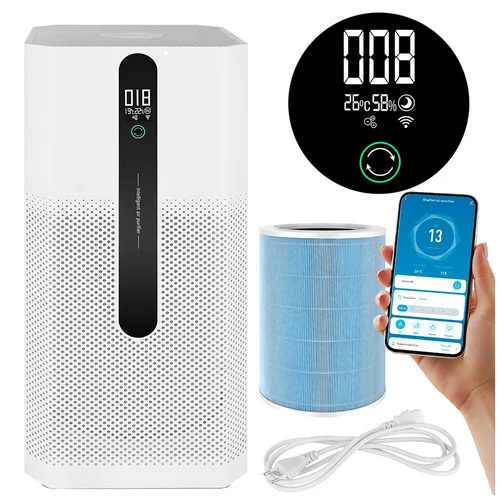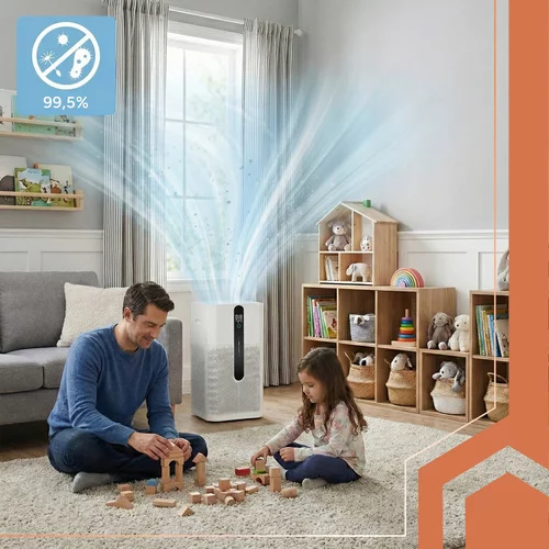 Aer curat fără compromisuri pentru alergici, familii cu copii și gospodării din oraș. Filtrare avansată triplu cu HEPA H12 și carbon activ captează majoritatea prafului, polenului și mirosurilor, în timp ce ionizarea reîmprospătează aerul ca după o furtună. Funcționare silențioasă, consum redus și control prin mobil aduc confort, un mediu mai sănătos și liniște în fiecare zi.