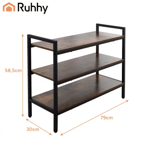 Stilatul pantofar Ruhhy combină funcționalitatea, durabilitatea și designul loft într-o formă compactă. Trei rafturi solide oferă suficient spațiu pentru încălțămintea întregii familii, în timp ce combinația de cadru metalic și rafturi din lemn va adăuga interiorului un aspect modern și confortabil. O soluție ideală pentru menținerea ordinii chiar și în holuri mai mici fără a ocupa spațiu inutil.