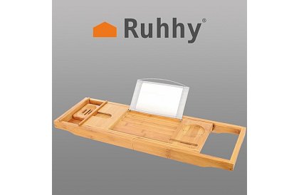 Raftul a fost conceput pentru a garanta confortul și funcționalitatea în timpul băii. Are un suport metalic pentru tabletă/carte cu 3 niveluri de ajustare (suportul poate fi demontat). Un loc special este destinat pentru un pahar de vin. Include un inserție detașabilă pentru prosop, un bol pentru săpun, un loc pentru telefon și o adâncitură pentru lumânare sau parfum. Datorită faptului că raftul este extensibil și lungimea sa poate fi ajustată, va funcționa practic în orice cadă, indiferent de dimensiunea sau forma acesteia.