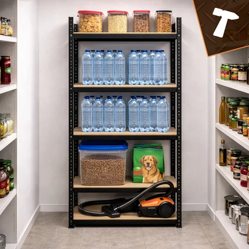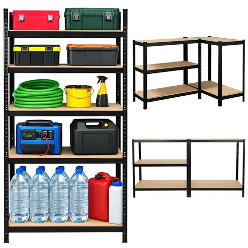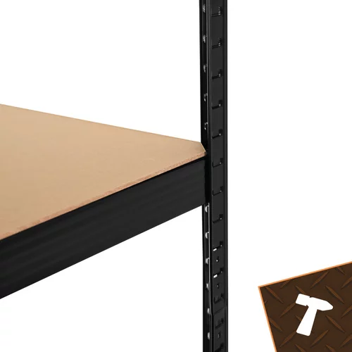 Raft robust de depozit oferă un spațiu de depozitare fiabil și organizat pentru obiecte grele și ușoare. Structura din oțel cu vopsea pulbere asigură o rezistență ridicată la coroziune și la deteriorare mecanică. Rafturile stabile MDF cu întărituri permit depozitarea în siguranță a uneltelor, anvelopelor, cutiilor sau a stocurilor de materiale. Datorită sistemului de montare fără șuruburi, raftul poate fi asamblat cu ușurință fără unelte, iar înălțimea ajustabilă a rafturilor permite adaptarea la diferite tipuri de obiecte depozitate. O soluție ideală pentru garaj, subsol, atelier, depozit sau spații comerciale.