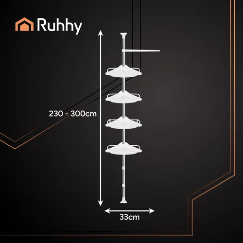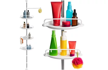 Practic raft telescopic pentru duș aduce ordine, confort și stil modern în fiecare baie. Înălțimea ajustabilă de la 240 la 310 cm permite adaptarea la orice spațiu fără găurire. Patru rafturi funcționale, cârlige și un suport oferă loc pentru cosmetice, bureți, prosoape și alte accesorii de baie. O soluție elegantă și funcțională care facilitează organizarea zilnică a băii.