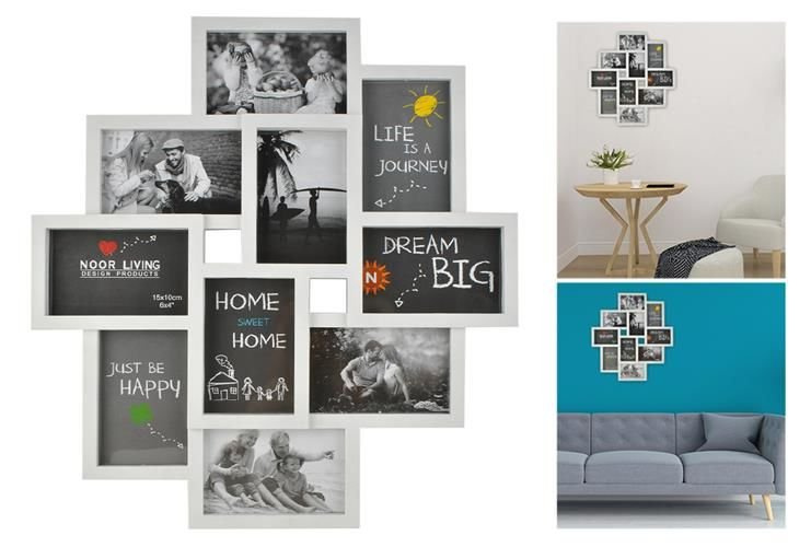 • Efect decorativ atractiv: forma originală a ramei și aranjamentul în colaj al fotografiilor