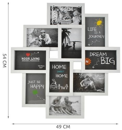 Rama pentru fotografii este o modalitate practică de a expune până la 10 imagini într-un singur loc. Efectul de colaj original și culoarea albă elegantă vor adăuga stil și caracter interiorului, economisind în același timp spațiu în comparație cu cadrele separate. Construcția din plastic asigură siguranța chiar și în gospodăriile cu copii sau animale de companie.