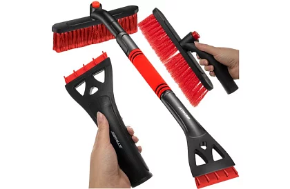Un instrument ideal pentru condiții de iarnă, care permite îndepărtarea eficientă a gheții, a brumei și a zăpezii de pe vehicul. Datorită mecanismului telescopic, racletei detașabile și periei rotative se curăță cu ușurință locurile greu accesibile, fără a deteriora vopseaua. Mânerul ergonomic și materialele rezistente asigură confort și o durată lungă de viață a uneltei.