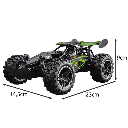 Mașina RC oferă distracție extremă datorită construcției rezistente, șasiului complet suspendat și roților mari din cauciuc. Vehiculul se descurcă pe diverse suprafețe – iarbă, pietriș, asfalt și nisip ușor – iar controlul său intuitiv este potrivit pentru copii și începători. Mașina dispune de rază lungă de control, o baterie puternică cu opțiunea de schimbare și geometrie ajustabilă a roților pentru stabilitate maximă. Replica la scară 1:18 asigură un aspect realist și siguranță conform normelor europene.