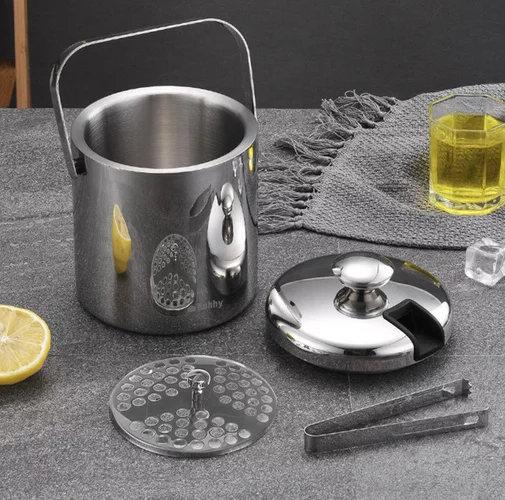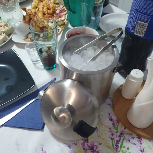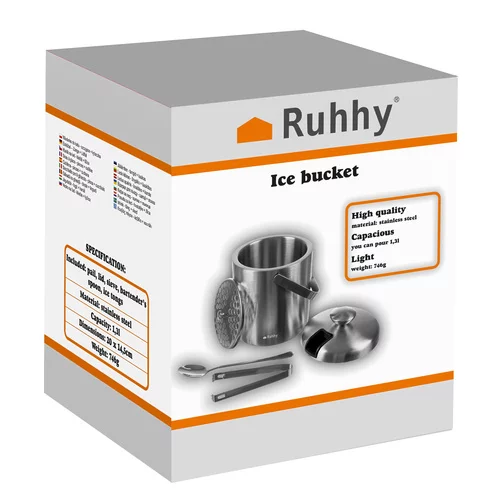 Un ajutor practic și elegant pentru iubitorii de băuturi răcite. Acest recipient cu perete dublu va menține gheața mai mult timp înghețată, astfel încât să vă puteți bucura de băuturi răcoritoare chiar și în timpul întâlnirilor mai lungi cu prietenii. Datorită capacității mari de 1,3 litri, poate conține cuburi de gheață, o sticlă de vin sau doze, iar cu cleștii și lingura practică aveți tot ce aveți nevoie întotdeauna la îndemână.