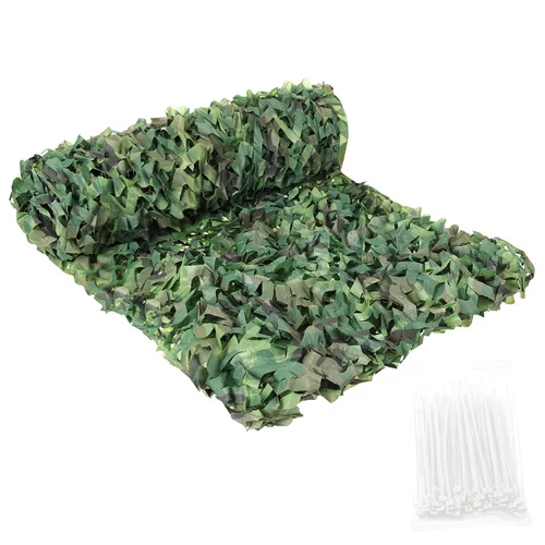Plasa de camuflaj oferă o umbră, intimitate și protecție pentru bunuri sau echipamente în teren. Ideal pentru grădină, camping, jocuri de airsoft sau muncă în natură, oferă o construcție ușoară, rezistentă la apă și cu uscare rapidă, care poate fi utilizată pe tot parcursul sezonului, indiferent de condițiile meteorologice. Setul include 100 de benzi de strângere, care permit o montare rapidă și ușoară.