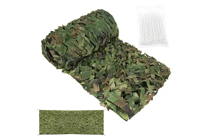 Rețeaua de camuflaj oferă umbră, intimitate și protecție pentru bunuri sau echipamente în teren. Potrivită pentru grădină, camping, jocuri de airsoft sau muncă în natură, oferă o construcție rezistentă, ușoară și impermeabilă, care poate fi utilizată pe tot parcursul sezonului în diferite condiții meteorologice. Setul include 100 de curele de strângere pentru o montare rapidă și ușoară.