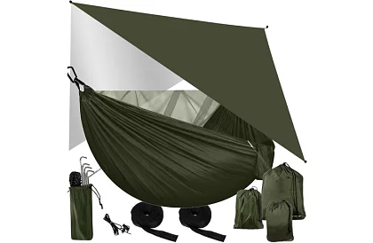 Hamaca turistică oferă o odihnă confortabilă și sigură pentru două persoane în timpul campingului, bushcraft-ului sau călătoriilor. Materiale de înaltă calitate și un design rezistent suportă până la 250 kg și asigură un suport fiabil și pentru doi adulți. Setul include o plasă împotriva insectelor și o punte, care protejează împotriva insectelor, radiațiilor UV, ploii și rouăi, iar o pungă practică permite păstrarea lucrurilor necesare la îndemână. Montaj rapid cu carabiniere, curele și cuie durează doar 6 minute fără unelte suplimentare.