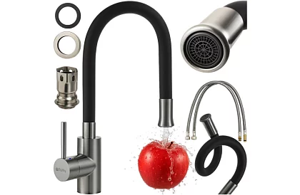 Baterie de bucătărie modernă, proiectată pentru confort maxim în utilizarea zilnică. Duza flexibilă rotativă la 360° permite direcționarea ușoară a fluxului de apă exact acolo unde aveți nevoie, fără stropire și efort inutil. Aeratorul încorporat îmbunătățește fluxul de apă, ajută la economisirea consumului și limitează formarea calcarului. Construcția durabilă, instalarea simplă și întreținerea ușoară o fac o soluție practică pentru orice bucătărie.