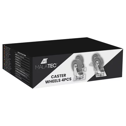 Setul practic de roți pivotante cu capacitate mare de încărcare facilitează manipularea obiectelor mai grele acasă, în atelier și în operare. Roțile din cauciuc asigură o funcționare silențioasă și amortizarea șocurilor, iar construcția pivotantă permite manevrarea ușoară, iar cele două frâne integrate fixează în siguranță poziția. Soluția ideală pentru mobilier mobil, cărucioare și mese de lucru.