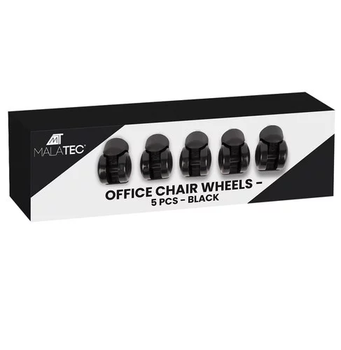 Utilizare universală – setul de 5 roți se potrivește la majoritatea scaunelor de birou, de joc, rotative și de scris cu șurub de 11 mm. Instalarea este ușoară și rapidă – "clic".