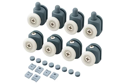 Setul de roti superioare și inferioare este ideal pentru deschiderea ușoară și lină a cabinelor de duș. Roțile sunt fabricate din plastic și metal rezistent la coroziune și se potrivesc în majoritatea cabinelor de duș. Sistemul permite schimbarea rapidă, montaj ușor și îndepărtarea sticlei pentru curățare fără demontarea roților.