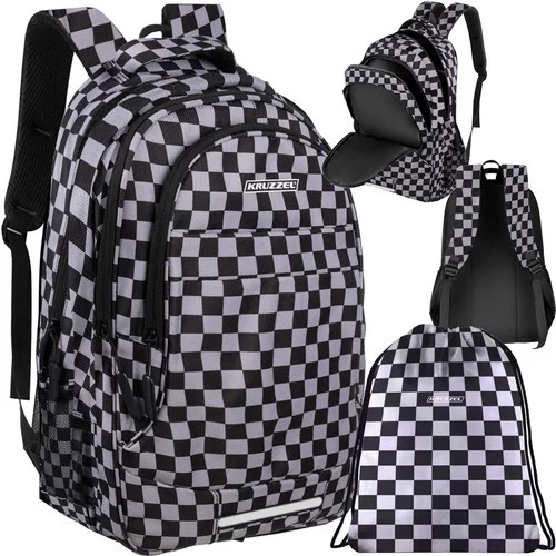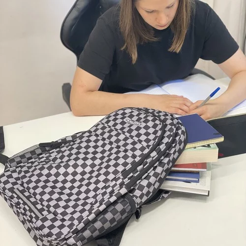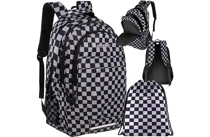 Rucsac spațios și rezistent destinat pentru școală, sport și utilizare zilnică, care combină capacitate mare, confort la purtare și un design în carouri distinctiv. Materialele de calitate, umplutura protectoare și aranjamentul bine gândit al spațiului asigură depozitarea în siguranță a cărților, laptopului și a bunurilor personale. De asemenea, include o geantă pentru încălțăminte sau sport, asortată cu stilul rucsacului.