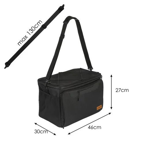Menține alimentele și băuturile proaspete datorită stratului izolator termic, care păstrează eficient temperaturi scăzute și ridicate. Ideal pentru excursii de o zi, picnicuri sau grătare, permite împachetarea confortabilă a tot ce este necesar, de la mâncare și băuturi până la o altă pătură sau accesorii. Cureaua de umăr ajustabilă asigură o purtare confortabilă, iar materialul impermeabil protejează conținutul de umiditate.