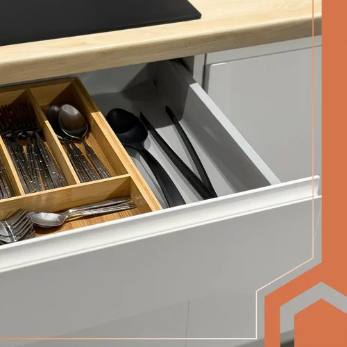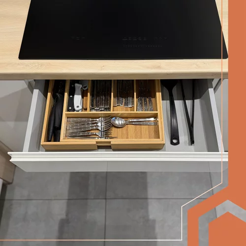 • Suprafață antiderapantă: stabilizează obiectele depozitate și elimină zgomotul din sertare