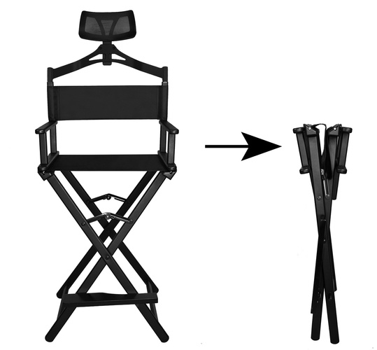 Scaunul profesional de machiaj cu suport pentru cap este ideal pentru machiaj, estetică și scopuri de regie. Este pliabil, fabricat din aluminiu negru și șezut din material impermeabil Oxford 600D. De asemenea, scaunul este echipat cu un suport pentru cap confortabil și un suport pentru picioare pentru un confort maxim în timpul șederii îndelungate. Structura este stabilă și capacitatea de încărcare de până la 140 kg asigură utilizarea în siguranță. Datorită cadrului ușor și plierii facile, scaunul este ușor de transportat și depozitat, ideal pentru esteticieni mobili și saloane staționare.