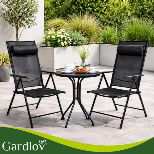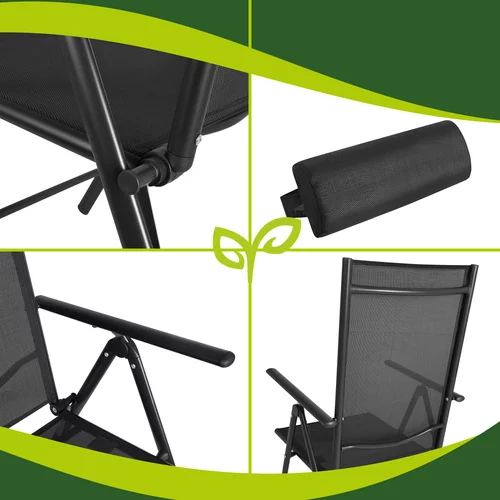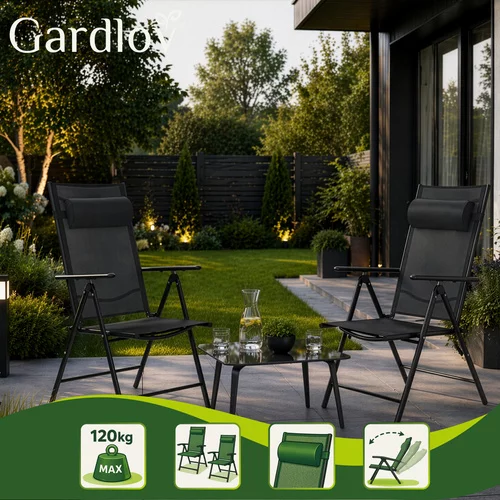 Setul de scaune de grădină pliabile este alegerea ideală pentru o relaxare confortabilă pe terasă, balcon, grădină sau în timpul campingului. Datorită spătarului reglabil, brațelor confortabile și pernei moi pentru cap, îți poți ajusta cu ușurință poziția ideală pentru relaxare. Structura solidă asigură stabilitate în timpul șederii, iar designul pliabil permite o depozitare ușoară în afara sezonului sau o transportare rapidă după cum este necesar.