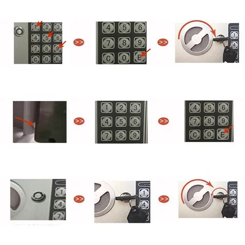 • Protecție dublă – încuietoare electronică cu cod de 3–8 cifre și posibilitate de deschidere de urgență cu cheia. După trei introduceri greșite, seiful se blochează timp de 30 de secunde.