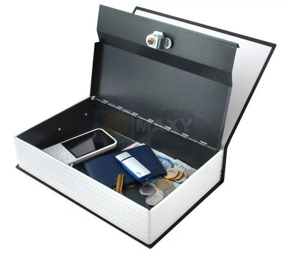 Seiful în formă de carte este o soluție inteligentă și discretă pentru păstrarea banilor, documentelor, obiectelor de valoare sau medicamentelor. Datorită aspectului său realist de carte, se integrează perfect printre celelalte volume din bibliotecă și nu stârnește suspiciuni. Designul închis și interiorul din oțel asigură că lucrurile păstrate rămân în siguranță acasă, la birou sau în hotel.