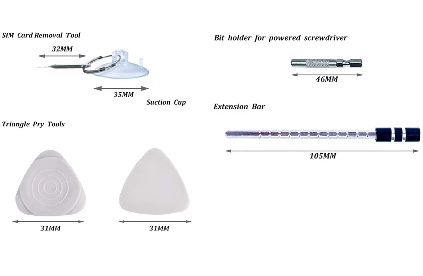 - biți Tri-wing: 2x Y000 (0.6), Y1 (2.0), Y2 (2.5), Y3 (3.0)