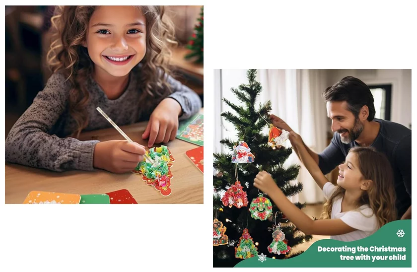 Eliberați talentul artistic al copiilor dvs. și lăsați-i să creeze decorațiuni pentru pomul de Crăciun. Inspiră imaginația și expresia artistică prin crearea unor adevărate opere de artă colorate și texturate. Imaginile pot fi expuse apoi. Un cadou minunat pentru copiii dvs.