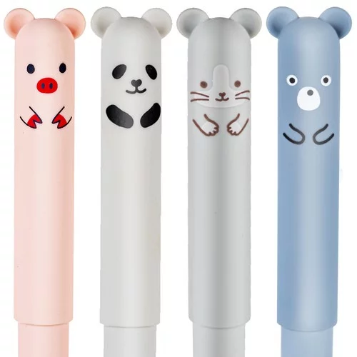 Acest set conține patru stilouri ștergătoare cu motive de animale drăguțe – purceluș, panda, șoarece și ursuleț. Perfect pentru copii care învață să scrie într-un mod jucăuș și doresc să corecteze ușor greșelile. Cerneala albastră și vârful precis permit o scriere confortabilă și curată, în timp ce designul motivant al animalelor susține interesul pentru învățare. Setul este ideal atât pentru școală, cât și pentru mediul de acasă.