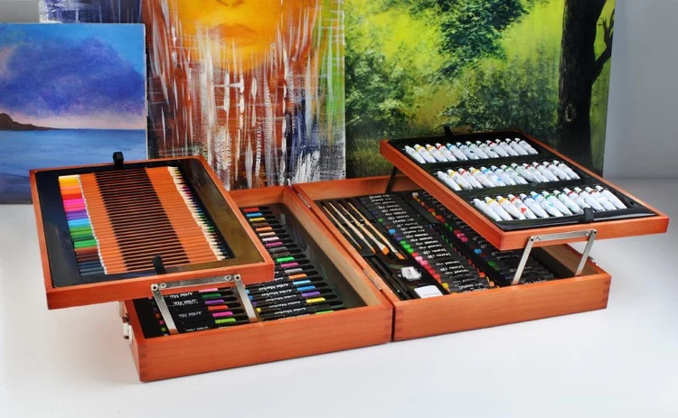 Descoperiți lumea creativității și artei cu un set de artă care conține 177 de elemente pentru pictură și desen. Cufărul din lemn cu cleme rezistente menține totul la un loc, astfel încât setul să nu se deterioreze nici în timpul transportului și este ideal pentru utilizare acasă sau în călătorii. Setul este potrivit pentru copii mai mici și mai mari, precum și pentru adulți care doresc să își dezvolte talentul și creativitatea. Elegantul cufăr din lemn garantează că fiecare element are locul său, oferind o privire de ansamblu ușoară și acces rapid la culori, creioane sau pensule.
