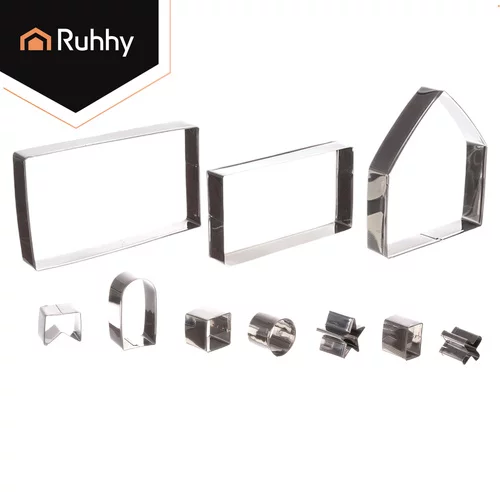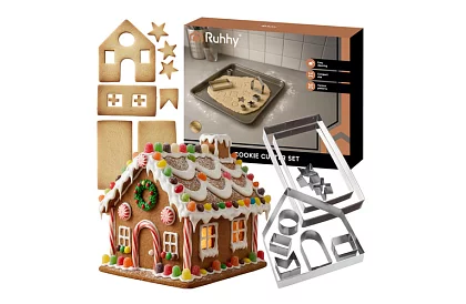Creează-ți acasă o frumoasă căsuță din turtă dulce cu acest set de forme de tăiat. Datorită celor 10 piese atent concepute, poți tăia cu ușurință pereții, acoperișul, feroneria, ușile, coșul de fum și decorațiile. Forma este potrivită pentru turtă dulce, aluat fragil și pastă de zahăr, astfel încât atât copiii, cât și adulții se vor bucura de distracție la coacere și decorare.