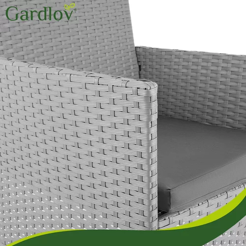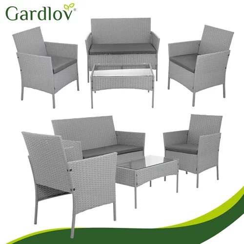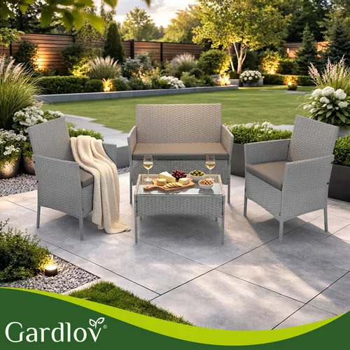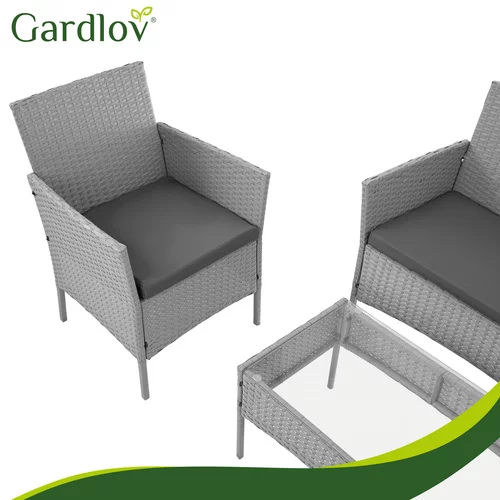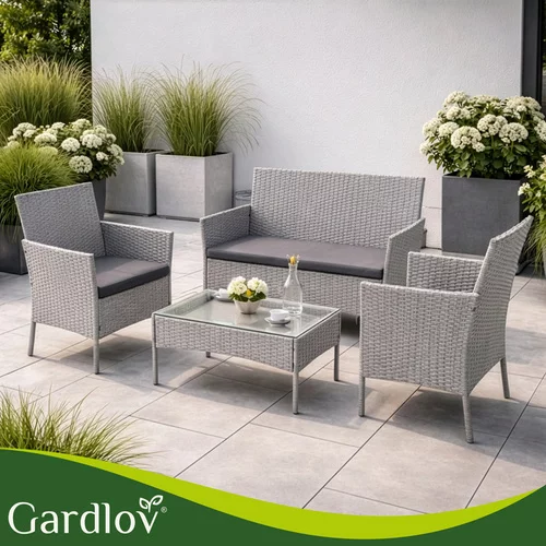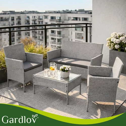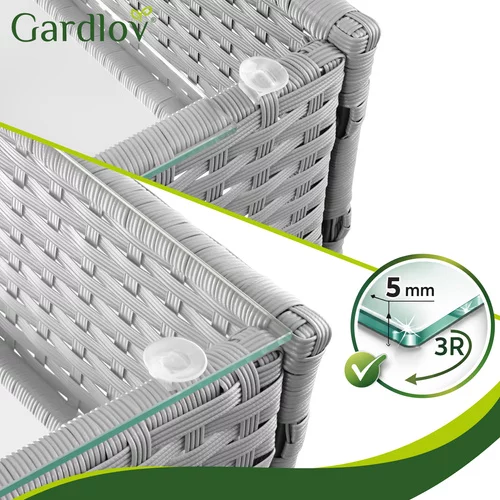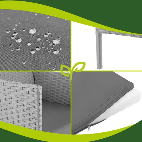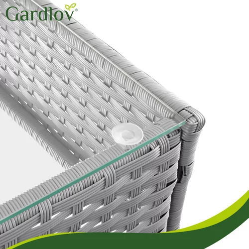 Elegantă set de grădină din tehnoratan creează un loc plăcut pentru relaxare pe terasă, balcon sau grădină. Combinația de structură din oțel zincat, tehnoratan rezistent și perne confortabile oferă confort și o durată lungă de viață în utilizarea exterioară. Praticul masă de cafea cu blat din sticlă oferă un spațiu ideal pentru a așeza băuturi sau gustări. Designul modern gri se potrivește ușor în diferite spații exterioare și ajută la crearea unui colț de relaxare stilat pentru familie și prieteni.