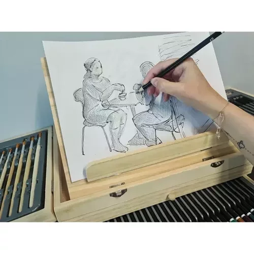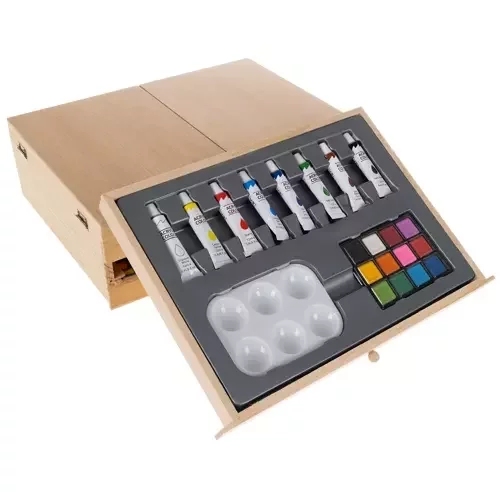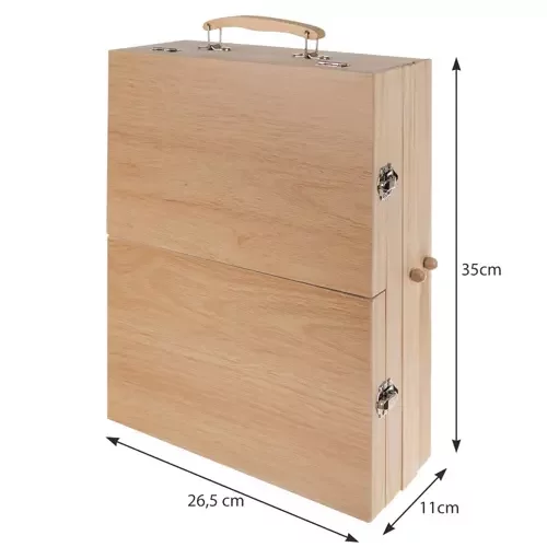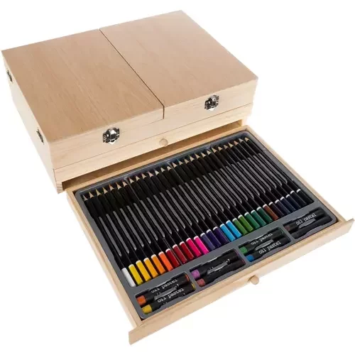 Oferă un selecție uriașă de 83 de elemente care permite dezvoltarea creativității și imaginației fiecărui artist. Setul de pictură conține tot ce ai nevoie pentru a crea opere de artă sofisticate și originale – de la pensule, creioane și carioci până la vopsele și suporturi. Datorită valizei din lemn cu suport, accesul la componentele individuale este rapid și convenabil, iar toate elementele sunt organizate clar, astfel încât să fie ușor de menținut ordinea și siguranța în utilizare.
