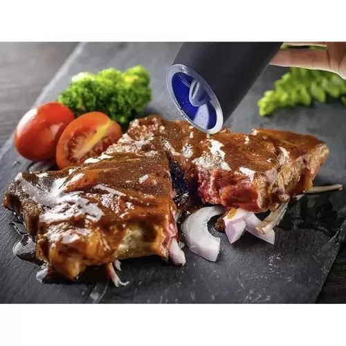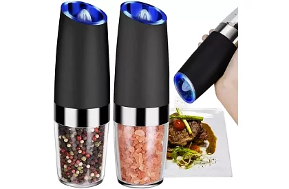 Set practic și modern de râșnițe electrice, care vă permite să condimentați preparatele rapid și ușor. Mecanismul de măcinare ceramic păstrează gustul și aroma condimentelor, iluminarea LED vă facilitează măcinarea chiar și în condiții de lumină slabă, iar comutatorul gravitațional permite activarea cu o singură mână. Râșnițele sunt ideale pentru piper, sare și ierburi uscate, iar datorită setării continue a măcinării, veți obține întotdeauna granulația dorită.