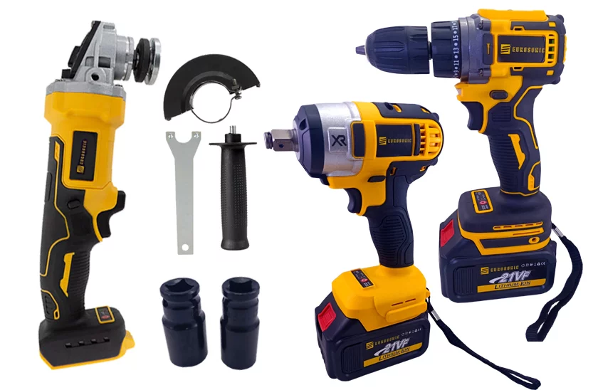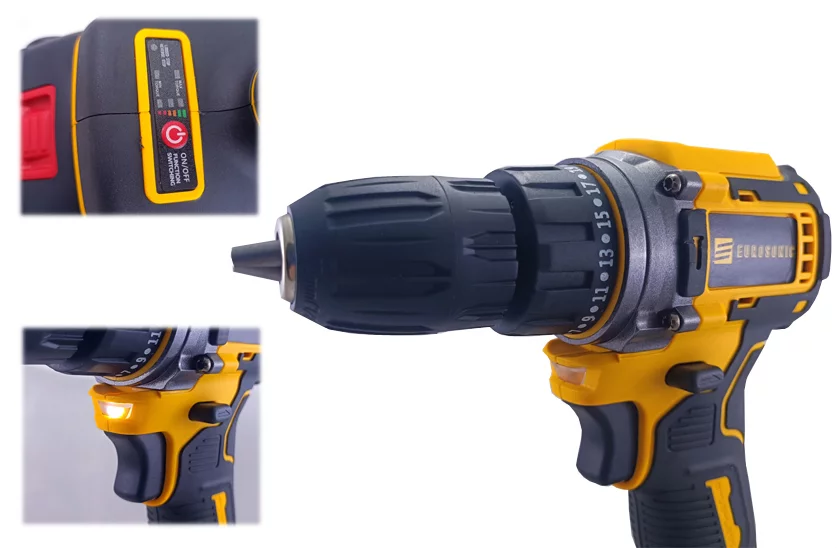 Setul de scule cu acumulatori EUROSONIC este format din bormașină electrică, cheie cu impact electrică, polizor unghiular electric, doi acumulatori, încărcător și geantă de transport. Datorită caracteristicilor lor, sculele sunt deosebit de potrivite pentru utilizarea hobby de zi cu zi.