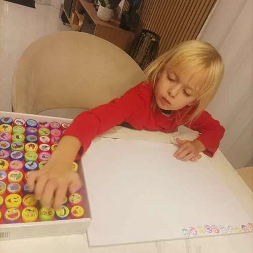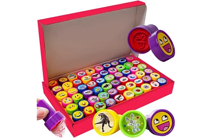 Setul de 60 de ștampile oferă ore de distracție și creație creativă pentru copii. Ștampilele au motive cu animale și emoticoane, care pot fi folosite pentru a decora caiete, invitații, felicitări sau pentru a colora contururile. Cerneala este sigură pentru pielea copiilor, ceea ce asigură o joacă liniștită și creativă fără griji legate de alergii.