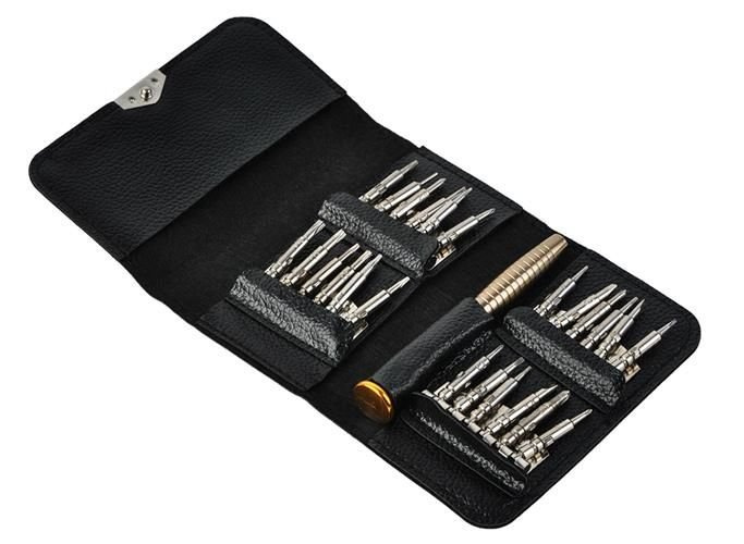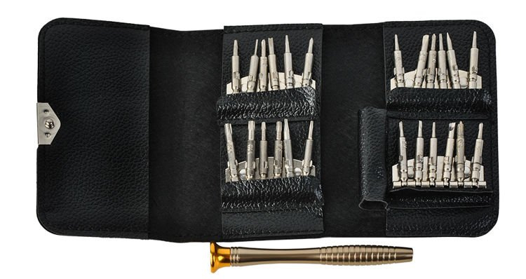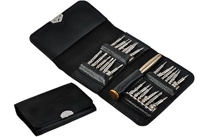 Setul de șurubelnițe conține 25 elemente – 24 vârfuri și un suport de bază – ideale pentru service și reparații la majoritatea dispozitivelor electronice mici. Șurubelnițele sunt păstrate într-un caz din ecopiele închis magnetic, care asigură ordinea și previne pierderea elementelor individuale. Fiecare vârf este fixat ferm de suport, care permite o îndepărtare ușoară și o utilizare sigură. Setul este potrivit nu doar pentru reparații la telefoane, smartphone-uri și laptopuri, ci și pentru lucrul în ateliere de ceasornicărie și bijuterii, instalații electrice sau optică.