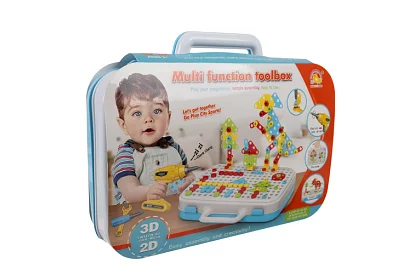 Construcția pentru copii permite dezvoltarea într-un mod jucăuș a abilităților tehnice, preciziei mișcărilor și coordonării ochi-mână. Șurubelnița funcțională pe baterii permite copilului să înșurubeze singur șuruburile, ceea ce aduce bucurie și susține jocul creativ. Geanta practică cu mozaic facilitează organizarea și transportul tuturor pieselor, în timp ce până la 196 de elemente oferă posibilitatea de a crea diverse structuri 3D, astfel încât jucăria să nu devină plictisitoare pentru copil.